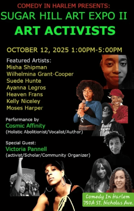 The inaugural SUGAR HILL ART EXPO featured emerging visual artists including Uncut Art, tasha douge’, Milya Izel, Awesum , Red, Randy, Logic, as well as trailblazer Moses Harper, who unveiled her latest works, including a tribute to award winning actress and director Phylicia Rashad.