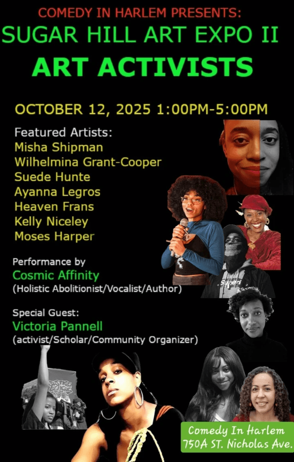- News and Events  - October 12, 2025- SUGAR HILL ART EXPO II- Comedy In Harlem hosted- SUGAR HILL ART EXPO II- Including featured artist, Moses Harper.- The ARTIVIST LIBERATOR, an immersive art publication project by Moses Harper, made its debute to the public.- - Artists, creatives, and community builders who share works that speak to activism, political change, and social justice.- - A special dedication to an activist who has brought positive change to the world.- - Opportunities to collaborate with community initiatives. - OCT. 4, 2025- Meet Moses Harper during- ARTIST TALK- The Children's Art Carnival- Saturday October 4, 2025 - 4:00PM-6PM- Moses Harper will be a featured artist/speaker during the - "First Time Ever I Saw Your Face", exhibit honoring Black Girlhood, at The Children’s Art Carnival, located at - 62 Hamilton Terrace, New York, NY 10031.  - September 26, 2025 6:00 - 8:00PM- In partnership with The Colored Girls Museum, The Children's Art Carnival unveiled new, original works by black women artists from Harlem, celebrating Black Girlhood. Moses Harper is amongst the 3 artists featured. - July 27, 2025- Sugar Hill Art Expo- The inaugural SUGAR HILL ART EXPO featured emerging visual artists including Uncut Art, tasha douge’, Milya Izel, Awesum , Red, Randy, Logic, as well as trailblazer Moses Harper, who unveiled her latest works, including a tribute to award winning actress and director Phylicia Rashad.  - Jan. 18 - Feb. 11 2024- "The Fire This Time", festival at The Wild Project- Moses' series, "The Divine Feminine", was featured during, The Fire This Time Festival, taking place at,- The Wild Project, 195 E. 3rd St, in New York City - June 18, 2023 - "The Book of Love: Confessions of Love By Black Lesbians" - "The Book Of Love: Confessions Of Love By Black Lesbians" was performed at The Town School Theater, on June 18th  - March 11 - March 12, 2023 - The Book Of Love: Confessions Of Love By Black Lesbians - "The Book Of Love: Confessions Of Love By Black Lesbians" a stage play by Moses Harper, was performed at The WOW Café Theater, on March 11th and 12th.  - Feb. 3, 2023 - Black History Celebration at Fordham University.- Moses was featured during Fordham University's Black History Month Cultural Presentation Feb. 3, 2023.  - Dec. 3, 2022 2-5pm at The WOW Café Theater - Creatives of Color Global- Musical, literary, and art exhibition of original works by multi faceted creatives.  - February 2, 2022 - Black History Celebration at Fordham University. - In collaboration with Fordham University's Black History Month Cultural Program, Moses Harper presented as guest speaker on February 2, 2022. To view the lecture, click here.  - July 1 - 31, 2021 - Blick Art, Harlem Art Installation - Moses' original art was featured at Blick Art's "12 Art Beats" display at Blick Art next door to the Apollo Theater in Harlem.